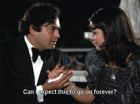 As Raju draws closer to Boss and his gang with the aid of Rocky’s photos, will he catch Rani? Will he figure out that she is his sister? Will Rani figure out that he is her brother? Can she be rehabilitated by Ashok’s love? Will I get through it without crying? And who is Boss, anyway? For all the answers, see Paapi. It’s long, with an over-complicated plot, but it’s good masala fun with some nice songs by Bappi Lahiri before he went overboard on disco.