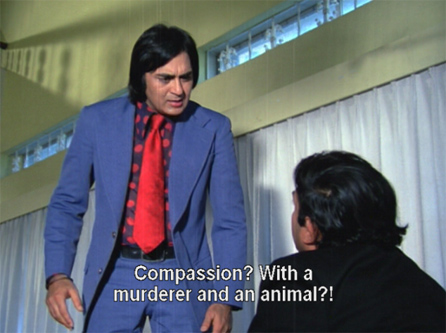 I did like it though. OP really knows how to tug at your heartstrings, and I love having mine tugged. He also has a great visual aesthetic, hampered though he was by working in the seventies. (I kid! I love the seventies!) Zeenat is gorgeous, with a short crop of hair (but plenty of wigs) and Sanjeev Kumar is his usual sterling self. I always love Sunil Dutt, although he does chew up the scenery, sports a Prince Valiant haircut, and his wardrobe is a blinding eyesore. Add in more OP Ralhan ingredients: strong feminist characters, the debate over punishment vs. compassion in dealing with crime, character actors Tun Tun and Moolchand, and there is plenty to enjoy.