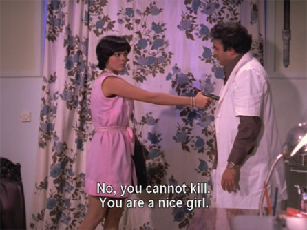 Rani manages to knock Laila out and escape, but the police are close behind and chase her into a building where…you guessed it! Dr. Ashok has his practice. She takes refuge there, and he puts two and two together pretty quickly. He is undaunted though, even when she pulls a gun on him.