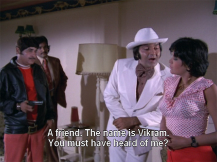 Vikram (Prem Chopra) and his goons all work for “Boss” who wears a scarf over his face and dark glasses to keep his identity hidden (his voice is done by the inimitable Amrish Puri). He thinks Rani’s talents will make her an asset to his gang, and she is not given an option to say “No thanks.”