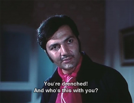 Oblivious to this (it’s Prem Chopra! certain trouble ahead!), the newlyweds spend a blissful night together. After Sunil leaves for work the next morning, it doesn’t take Dheeraj long to make his move. Sunil, returning home for his forgotten wallet, is in time to save Sonia’s honor but Dheeraj is accidentally killed during the ensuing fight. Sunil is arrested.