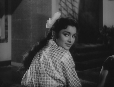 Kailash grows up to be Rajendranath, a bumbling idiot of a man; Yamuna wants to get him engaged to her good friend Jagat’s (Raj Mehra) daughter Nita (Asha Parekh). Here’s our first look on celluloid of Asha: