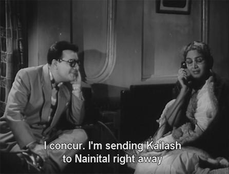 Raja is smitten by Nita’s beauty, although she does get him fired from his job. Before she leaves Ranikhet to meet Kailash and Nita in Nainital, Yamuna instructs the manager of her hotel to hire a bandmaster. Hmmm.
