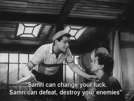 He advertises the services of “Professor Samri” who can help with any problem. The first to contact him is Kailash, newly arrived in town—he wants help in winning Nita’s affections; the second to contact him is Nita, who wants help getting rid of Kailash!