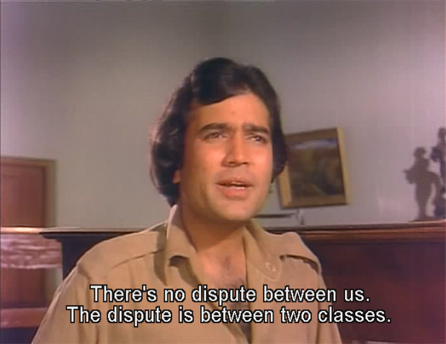 Rajesh Khanna and Amitabh Bachchan are paired again as best friends after Anand, and are superb. And Om Shivpuri (who is inextricably linked in my brain to evil Mr. Oberoi in Disco Dancer) delivers in a small but pivotal role as an unscrupulous businessman. The core issue—socialism as a cure for the plight of the middle and lower classes (and a responsibility of the wealthy) still seems as relevant today as it was thirty-five years ago.