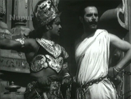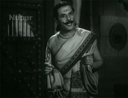 KN Singh is one of my favorite villains of the 40s and 50s. So suave! I decide that he must be Bhillam, and it turns out that he is. He has a nice big part in this film.