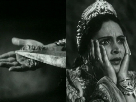 bollyviewer: Sohrab Modi does have a fabulous voice. And Durga—even though she’s not REALLY young here—is so beautiful. I love her dimples too, they even showed through her grouchiness.