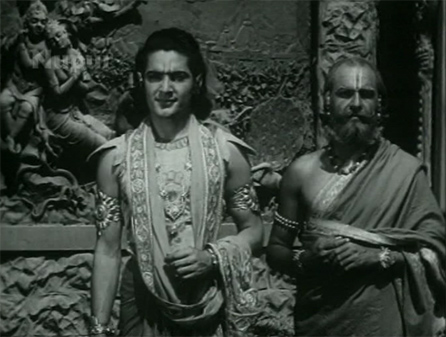 Saw ‘Pritvi Vallabh’ last night on a pirated VCD on my 19″ computer screen. The print was so so. Unfortunately, the film was incomplete! It stopped at the scene where Vilas’s mother (Kajjan?) and father (K N Singh!) starts walk away from Tailab and Mrinalvati and suddebly blows the conch (shell).