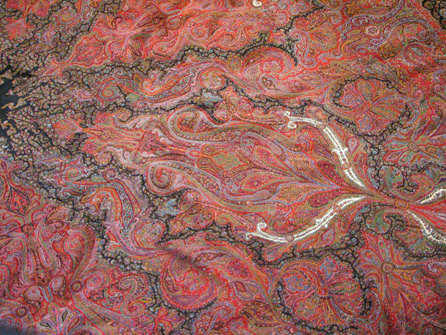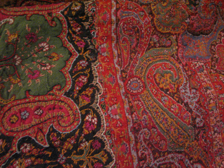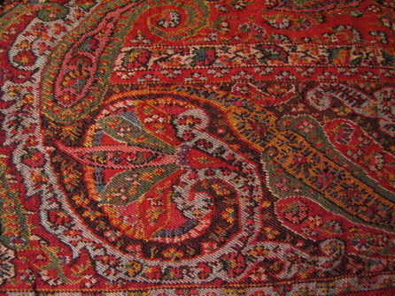 I recently acquired a beautiful handmade antique Kashmir shawl, with finely woven pieces sewn together and finished with hand-embroidered gates on all four sides. Indian textiles are just the bomb!