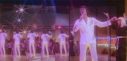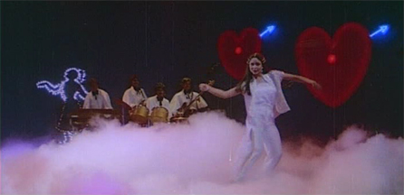 Dev thinks that Maya’s concern and care for him is because she loves him, and he indulges in a fantasy song (“Jaana”) about the two of them—and another new experience for me: Space Disco!