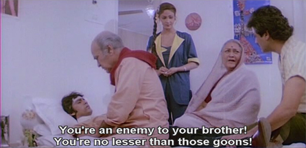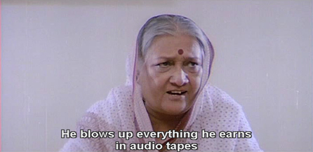 She’s so shrill that I have a headache within two minutes. You can see from their faces that her elder son Shiv (Raj Kiran) and husband are over it too.
