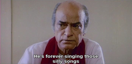 It’s not much of a story, but it’s simple and well done and as a showcase for the songs it succeeds mightily. The songs are not as bizarre (in my opinion) as some (Disco Dancer, e.g.) but are closer to American 70’s disco in sound—that may be a good thing or a bad thing, depending on your taste, but I liked them! I found Dina Pathak’s mother character very hard to tolerate (in case you didn’t pick up on that); but she was really the only grating note. In short: good time pass, sweet simple story and characters, nice songs and disco fun.