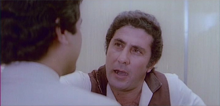 Aargh. I’d run away from home just to get out of hearing range. Anyway, Dev is determined to get a job singing in a club. His best friend Salim (Raja Bundela) writes songs for him to sing, and encourages him to keep trying. To that end, Dev goes to see Rana (Saeed Jaffrey), the owner of a nightclub called Club 54. He’s turned away by one of Rana’s men (Bob Christo) but manages to sneak into the office behind him anyway. It doesn’t go well.