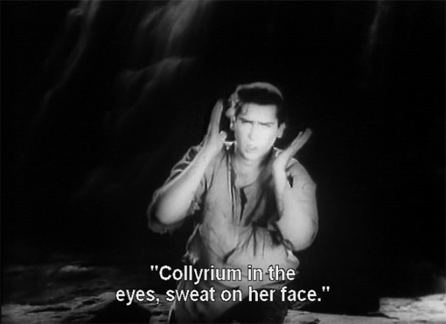 This thing called “collyrium” pops up in subtitles all the time. According to all the dictionaries I have looked through, it means eye salve or eye medication. Is that what it means in Hindi film subtitles too? Because that makes no sense here: