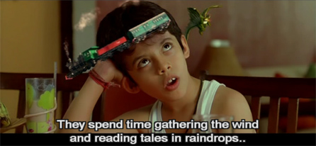 While I did find TZP somewhat guilty of this, several things conspired to engage me, and by the hour and twenty-six minute mark I was in tears. As nearly everyone has pointed out, Darsheel Safary (Ishaan) has possibly one of the most expressive faces in the history of the world.