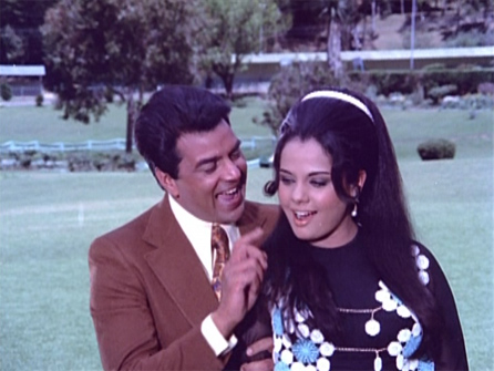 3. “Aaj Mausam Bada Beimaan Hai” from Loafer (1972) (sung by Rafi, music by Laxmikant Pyarelal). Dharmendra and Mumtaz wander through a flower garden in fabulous 70s outfits as their love story blossoms. Brown plaid pants! A flowery crocheted vest! These two make it all look gorgeous.