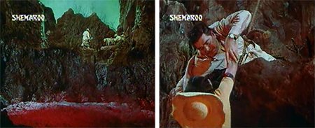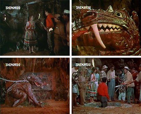 Good heavens, I’d forgotten about Godzilla and King Kong (or whatever…) and the giant mushrooms. This reminds me a good bit of Parasmani, actually: that had giant mushrooms too (which came equipped with electricity); a river of fire; and a giant spider that guarded the mythical parasmani. Completely lunatic movie, but sublime music!
