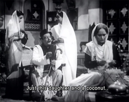 She insults Kishori and her father, but Jamuna intervenes and rescues the engagement (although Kishori’s father wants to do the right thing and get her the hell out of there). They are duly married, but I see problems ahead. And indeed: tragedy strikes at the wedding itself, when the lovely and compassionate Jamuna’s sari catches fire as she sings.