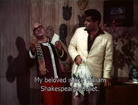 The screen cap above is notable for the fact that Rajendranath actually does say “Juliet” and not “Laila”! Anyway, Tommy’s romance with the doctor (whose father is Dhumal, also a doctor) is of course the Comic Side Plot, and is pretty standard stuff—occasionally funny, with long stretches that are dragged on too long. Enough said!