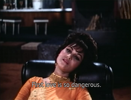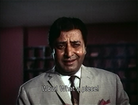 As I said earlier, the first half of this film is a typical Shammi joyride and lots of fun if you are a Shammi fan. The comedy bits get somewhat tiresome, but everything moves along and Shankar-Jaikishan’s songs are lovely. When Naresh gets caught in Mala’s web, though, the movie goes off the rails. It becomes melodramatic (really, really melodramatic) and hysterical, and a lot of what happens doesn’t really make any sense in the context of the characters we’ve gotten to know (especially that of Naresh). Much weeping and various offerings of self to God ensue, and although it’s supposed to be tragic it really just descends into farce. So: a mixed bag, but if you love Shammi don’t miss it.