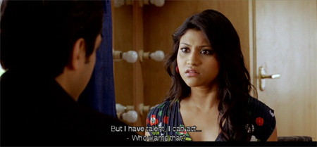 At the very outset, a class Farhan’s in is instructed to ‘feel’ the character. I didn’t think the end was done in a rush, I just think (in my armchair actor arrogance, LOL…we’ve seen her do a *lot* better to where she’s really one of the finest young actresses in the country today) Konkona ought to have been in that class! Whatever it was (might’ve simply been emotion), seemed to be missing. Of course, the film might know it. That class instructor also stresses the importance of drama in cinema :)