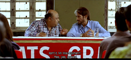 Of all the real-people cameos, I was very happy to see Mac Mohan (where he was forced to deliver Sambha’s dialogue from Sholay—no doubt something that happens often in real life to him too).