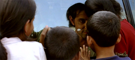 The sweetest moment in the film for me was when his car was surrounded by children shouting “Zaffar!” and he connected with them through the window glass. I got the impression that he might have been playing himself at that moment.