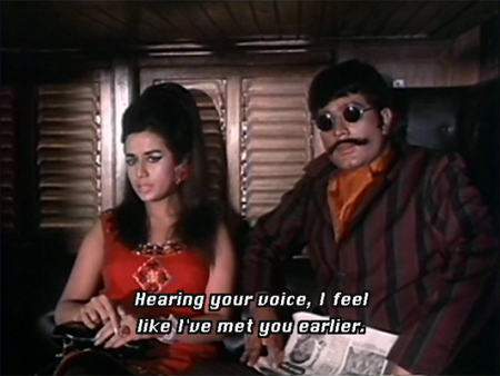Finally (thanks to Beth!) I got around to watching this Mehmood production, and I’m so glad I did. I seem to be on a roll of “not much plot but plenty of other stuff to entertain” types of films! I am sure I missed a lot of the regional humor, although some of it was so broad I couldn’t miss it—the south Indian family, for instance. Parts of it did drag on a little too long (the whole film was one big long Comic Side Plot, after all), but it was so much fun picking out guest actors and marvelling at Amitabh’s shirts that altogether I was highly entertained. Some of the subtitles were hilarious too—sometimes even because the actual dialogue was hilarious. Although Aruna Irani and Amitabh Bachchan were nominally the hero-heroine, it was a Mehmood & Friends vehicle all the way (no pun intended)!