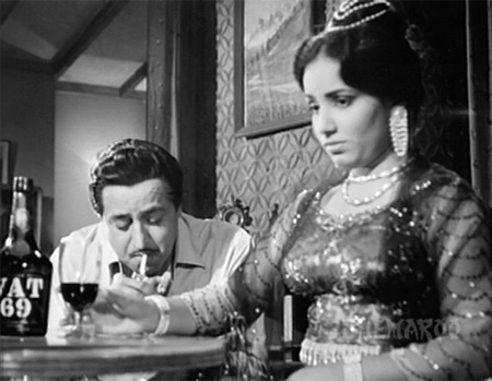Arun keeps company with a dancer named Leela (is she Jeevan Kala? I’m not familiar with her, although she’s very pretty) (yup, Jeevan Kala! Thanks for the confirmation!):