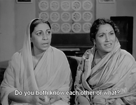 Meanwhile, Beena is now visiting her mother (Mumtaz Begum), who is Girdharilal’s old friend and neighbor, and they come to pay their respects. She is naturally startled to see Kishore there, and not very surreptitiously calls him a fraud and other bad things.