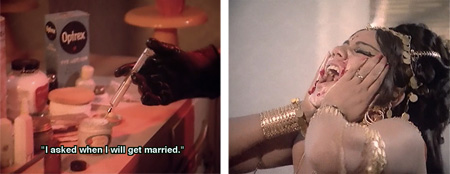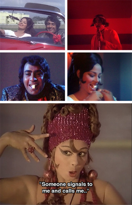 They track Nanda down at the same time—her working name is Maria (no Hindu names for such characterless girls!). Gopal poses as one of her customers, and notices Nanda’s distress at seeing Sudha in the restaurant where they meet, although she denies knowing her. When Nanda takes him back to her place, he confronts her about her obvious needle tracks. Pretty racy for 1973!