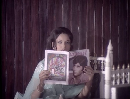 (I had to include this screenshot just for the irony: she is reading “Adam & Eve” magazine with Amitabh on the cover.)