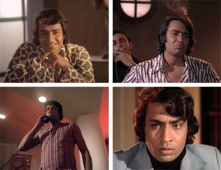 The first half of the film has a much grimmer aspect than expected, with a stern message about the perils of the city for young women looking for a better way of life. We are treated to (realistic) scenes of life for the underprivileged—a drunken father beats his wife as his children look on; a girl looks longingly into a shop window at a sari that she can’t afford. In a stroke of genius casting, too, Ranjeet is the man taking advantage of these girls and their dreams. Despite his sartorial handicap (early 70s, not his fault):