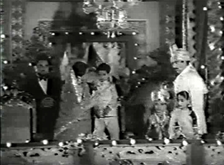 What little I managed to glean from the story I’ll put here (and anyone should feel free to correct my impressions if they can and want to!) along with lots of screen caps, although the picture quality leaves a lot to be desired. Still, it’s much much better than nothing! The movie opens with fireworks and a lit-up palace: it’s the little heir to the throne’s birthday, and his mother the Rajmata is celebrating.