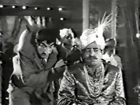 An emissary has come to see them—it’s the Rajmata’s old Minister!—and he is confronted by an Evil Guy with a Goatee (I’ll call him Captain Egg) (Muzaffar Adeeb) who is quite clearly interested romantically in the Rajkumari.