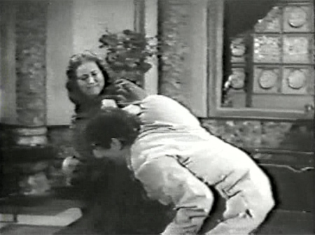We segue from that into adulthood: the two girls are still fighting, and Badal (Shammi Kapoor) is still laughing.