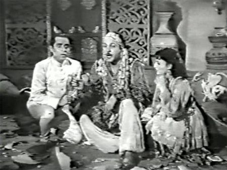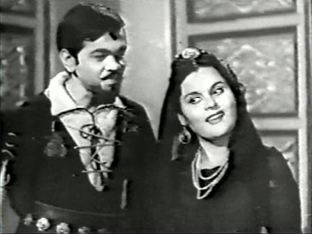 Badal’s best friend (Anwar Hussain, so I’ll call him Anwar henceforth) is now in love with Paro, and Badal is in love with Lily (Shashikala). It’s so lovely to see Shashikala in a heroine’s role—she is gorgeous, and fierce too!