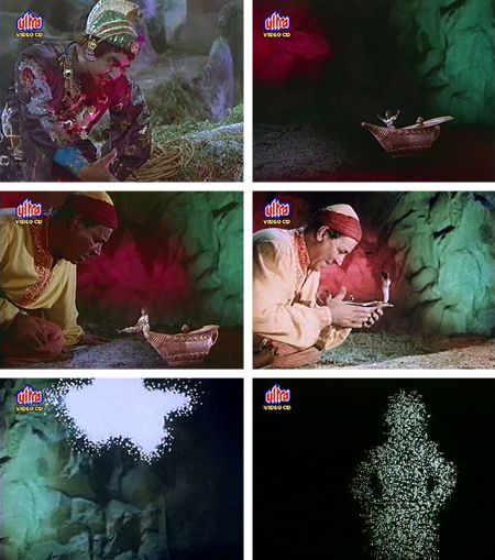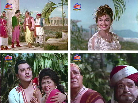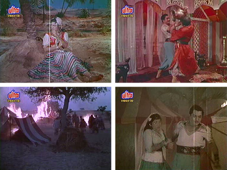 The end of our first installment saw Aladin passing out drunk at a restaurant in the desert, and Alibaba going off in search of Sinbad and Princess Jameela; elsewhere in the same desert, Sinbad is romancing Zarina (Minoo Mumtaz) for some unknown reason as Shyam Kumar tries to molest poor Jameela.