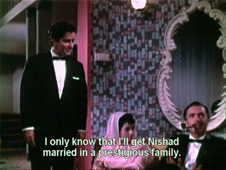 The visit doesn’t go well—Begum Amutullah is rude to Begum Khan Bahadur (I just love to say Begum: Begum Begum Begum!). It doesn’t much matter though, because Nishad’s mother wants to marry her off to her nephew Shibbu, and Anwar’s mother has promised Anwar to her niece Lajoo (ah, inbreeding—a long and happy tradition).