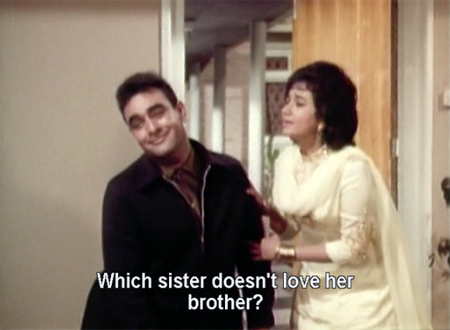 oh dear – how sad. I will try to recollect my original thoughts now – enjoyed this movie for all the character actors like Om Prakash, Manorama, Balraj Sahani et all. Songs were enjoyable although not upto the madan mohan class as you rightly point out in your post. Maorama was a scream in all the scenes both when she is actually mouthing dialogues as well as in her “silent act”. I cracked up on the scene when Manorama tells Om Prakash ” Nai hai ya kasai, hai tho mera bhai” – whethere he is a barber or a butcher, he i still my brother. In Hindi, nai, kasai and bhai rhyme. It was good to see Sashikala too. Nirupa Roy indeed looked gracefuly in those shararas.