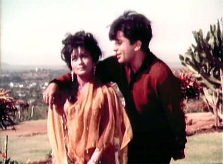 Sashi seems to have put on weight in the movie. I felt he was copying a lof of shammi’s mannerisms which perhaps was his way of trying to get a hit movie considering the movie was made in 1966 at the height of Shammi’s success. It took quite some time for Sashi’s career to really take off and he largely succeeded in the 70s. Hope this comment comes thruogh!