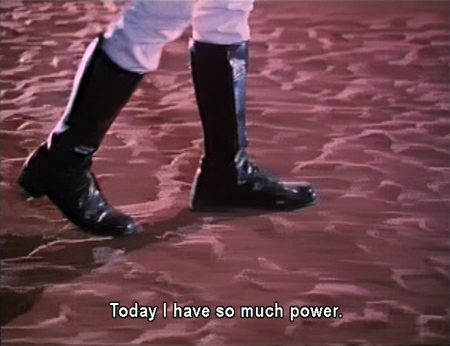 And finally, our trio finds the headquarters of evil belonging to the riding-booted madman. Evil HQ appears to be some sort of Egyptian tourist site patrolled by tiny silvery semi-transparent men in fencing outfits complete with swords.