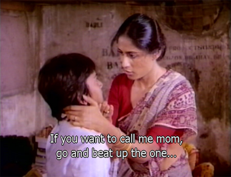 Maa doesn’t care for her either, mostly because romance will interfere with her plans for Avinash. She finally fills him in on why she’s brought him up to be an angry fist-fighting machine (and in the telling we are subjected to the first half-hour of the film all over again). Avinash is suitably enraged.