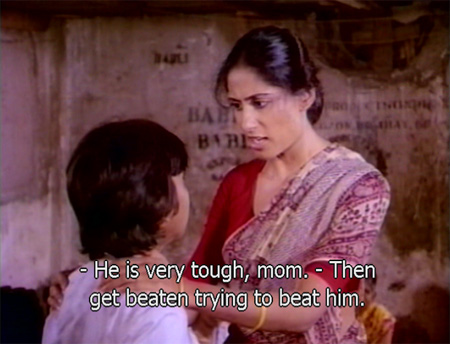 Aarti has the boy she prays for (I wonder what she would have done with a girl? I kind of would like to see that version) and brings him up as a fighter, starting the day the school bully beats him up.