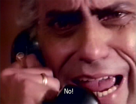 Poor Smita, is she trying (and failing) to compete with Amrish Puri in the eye-popping stakes in the “I will sire the baby” caps? And I wonder how she will “sire” a baby – assuming her husband hasnt already sired him!