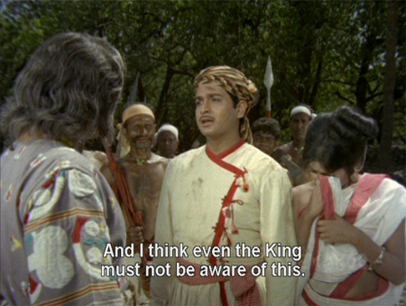 It turns out that the king’s soldiers (under the command of Kunwar Pratap Singh) have been making the villagers in this forest miserable: burning fields, raping the girls. She marches him back to her village and introduces him (he gives his name as Badal) to her father (Kamal Kapoor), who sums him up pretty quickly as a nice fellow and gives him a job to do in the palace.