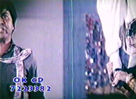 For beyond the significant raunch factor is the total incompetence of it all. It is not subtitled—and if it were, it should be done IN ALL CAPS, BECAUSE THAT’S HOW EVERYONE IN IT SPEAKS—but I don’t think that was a major issue comprehension-wise. The editing is choppy, to say the least. The bad guys are virtually indistinguishable from each other and they all shout their lines in what sounds very like Amrish Puri’s voice. They smack their lips and caress their own bare chests, and raping women is their hobby.