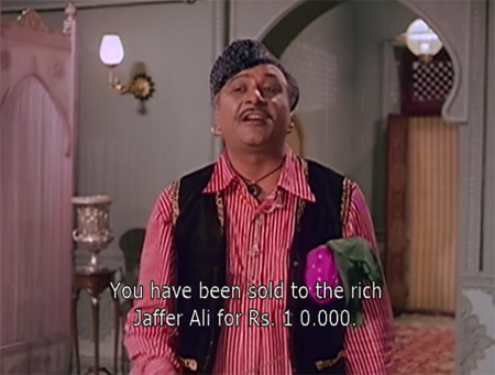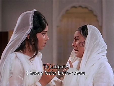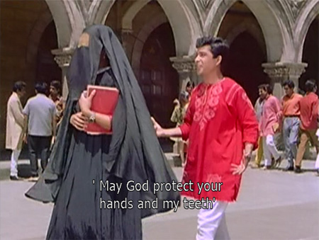 I very often find film children annoying (okay, real children too) but Firangi (subtitles call him “Foreigner” which also makes me laugh) is really quite cute. His uncle spends a great deal of the film kissing him, I guess since he’s not allowed to kiss Shabana. He also convinces him to play a prank on his teacher to get her to quit, telling Firangi he’ll find a pretty one for him instead. Done! I laugh and laugh at Firangi’s little mouse in a harness and leash.