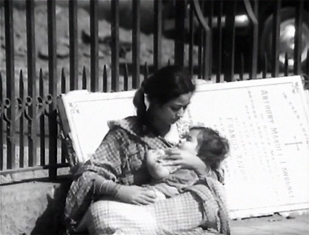 The movie opens with Lajjo (a luminously beautiful Indrani Mukherjee) walking the streets of Bombay with her baby Buntu, begging for food and trying to soothe him. I should say here that whoever did the sound for the film deserves the highest kudos for his work. The background traffic noise, the sounds of people bustling about their everyday tasks, all overlaid with a jaunty, jazzy music track, lends an upbeat and modern air to the busy crowds, as the destitute mother and child wander unheeded through the city. Despite there being very little dialogue, it is gripping, and Lajjo and her baby are so vulnerable and appealing that I fall in love with them instantly.