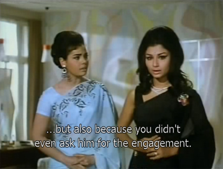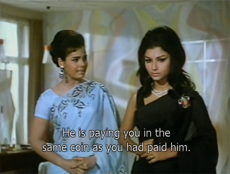 Anita lives with guardian Ajit and her friend Meena (Mumtaz), who is the only person in the film with any brains at all. After Sunil gifts her a sari through Bharti, Anita begins to pursue him, pretending to be as poor as he thinks she is (although she’s not very good at it).